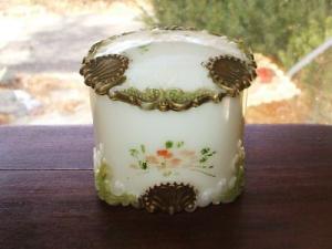 ANTIQUE MILK GLASS JEWELED PAINTED POWDER JAR     Completed    $9.99