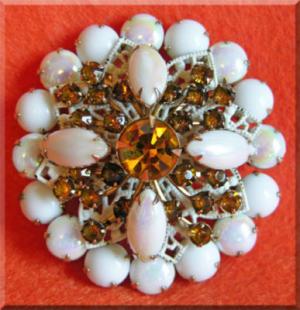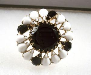 Vintage Milk Glass Black Rhinestone Brooch     Completed    $9.99