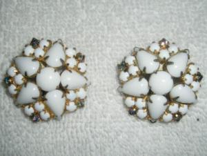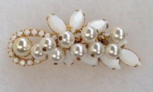 Vintage Milk Glass Rhinestones Faux Pearl Brooch     Completed    $9.99