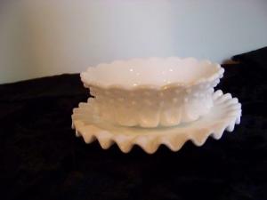 Milk Glass Hobnail Condiment Bowl W/ Underplate     Completed    $9.99