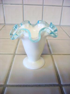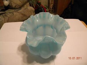 Vintage Blue Glass Vase bowl milk glass fenton     Completed    $9.99