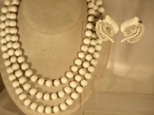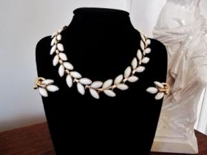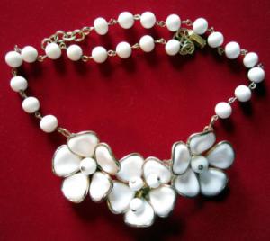 VINTAGE TRIFARI POURED MILK GLASS FLOWER NECKLACE     Completed    $9.99