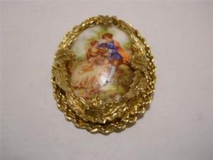VINTAGE MILK GLASS AND BRASS CAMEO PIN     Completed    $9.99
