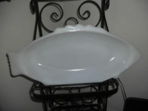 Rare Footed Milk Glass Silver Crest Banana Dish     Completed    $9.99