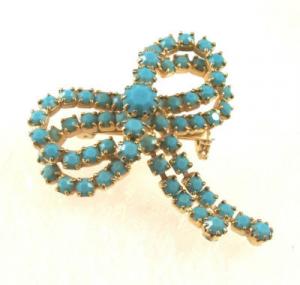 Vintage Blue Milk Glass Rhinestone Brooch Bow     Completed    $9.99