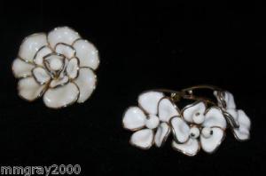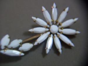 Prong Set Milk Glass Rhinestone Flower Brooch     Completed    $9.99