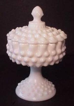 Vintage Fenton Hobnail Milk Glass Covered Jam Jar     Completed    $9.99