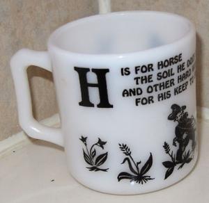 Hazel Atlas H is for HORSE Child's Milk Glass Mug     Completed    $9.99