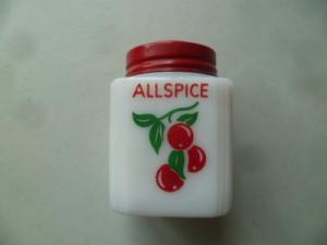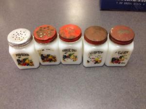 Vtg Set of 5 Milk Glass Spice Jars Red Metal Lids     Completed    $9.99
