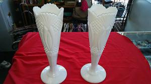 Vintage Milk Glass Flower Vases 12" Tall - 1 PAIR     Completed    $9.99