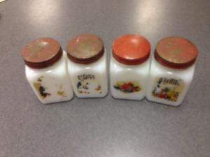 Vtg Set of 4 Milk Glass Spice Jars Red Metal Lids     Completed    $9.99