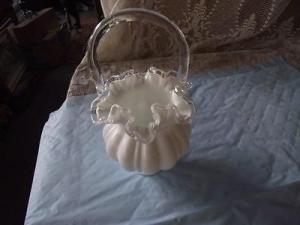 Cute Milkglass Fenton Ruffled Rim Basket!     Completed    $9.99