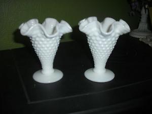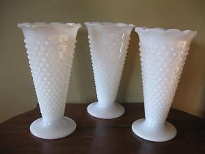 SET OF 3 VINTAGE HOBNAIL MILK GLASS VASES     Completed    $9.99