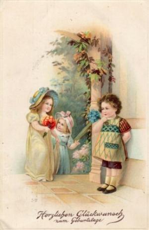 VINTAGE BIRTHDAY GREETING postcard: PUPPY DOGS     Completed    $1.25