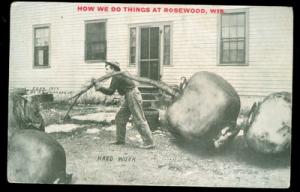 ROSEWOOD, WISCONSIN , EXAGGERATION POSTCARD. 1912     Completed    $0.99