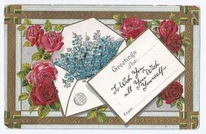 Greetings embossed postcard/ red roses/ poem/     Completed    $0.55