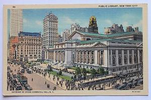 Old linen postcard PUBLIC LIBRARY, NEW YORK CITY     Completed    $0.49