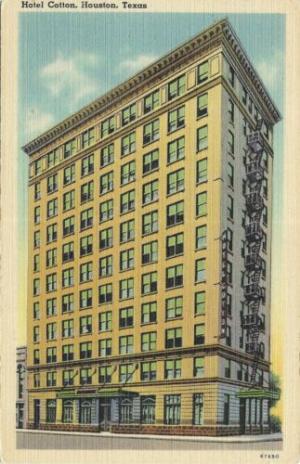 Linen postcard, The Hotel Cotton, Houston, Texas     Completed    $0.25
