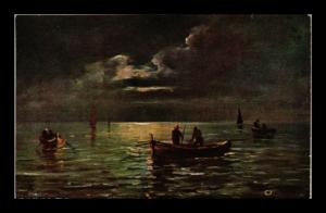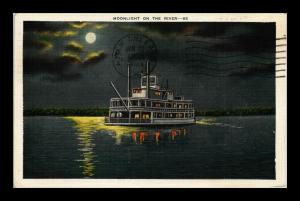 US LINEN POSTCARD MOONLIGHT ON THE RIVER BOAT     Completed    $0.25