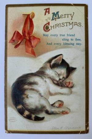 Clapsaddle Christmas Kitten Antique Postcard     Completed    $0