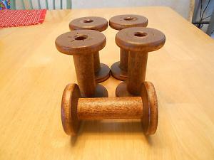 5 WOODEN SILK SPOOLS, BOBBINS 4" NICE PATINA!!!     Completed    $15.25
