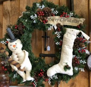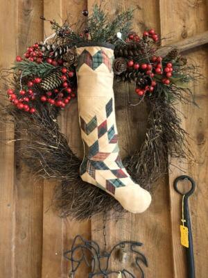 Primitive, Farmhouse Christmas Wreath With Stocking     Completed    $14.99