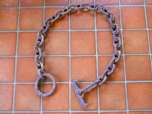 BRASS & WOOD CUFF IRON WITH LATCH VERY NICE     Completed    $14.99