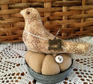 Primitive Calico Bird Make-Do Pin Cushion     Completed    $13.99