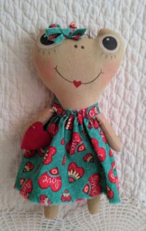 Primitive Frog Doll/Valentine Decor 13 inch     Completed    $13.99
