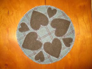 Primitive Valentine Hearts Candle Mat Penny Rug 2     Completed    $13.19
