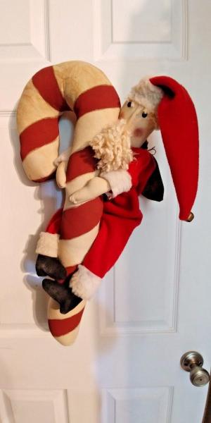 PRIMITIVE ~~~ LARGE CANDY CANE WITH SANTA     Completed    $12.99