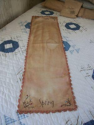 aged linen runner ~ heavily aged ~ Spring ~ Flowers     Completed    $12.99