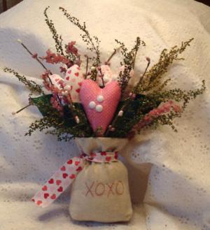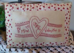 Primitive Redwork Stitchery Valentine Pillow     Completed    $12.99