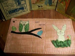 Primitive grungy Owl/ Bunny Easter Candle Mat     Completed    $12.99