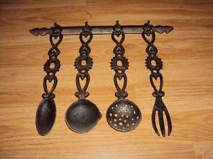 VINTAGE CAST IRON KITCHEN UTENSILS W/ WALL RACK     Completed    $12.95