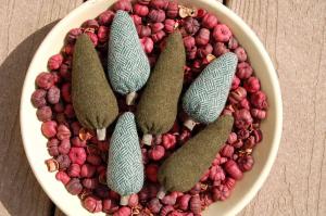 Primitive Wool Christmas Tree Ornies, Bowl Fillers     Completed    $11.99