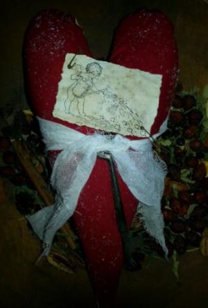 Primitive Bobbin stitched Heart head Doll     Completed    $10