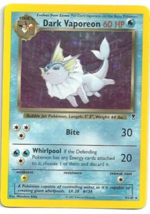 Dark Vaporeon 9/110 Legendary HOLO pokemon card     Completed    $1.95