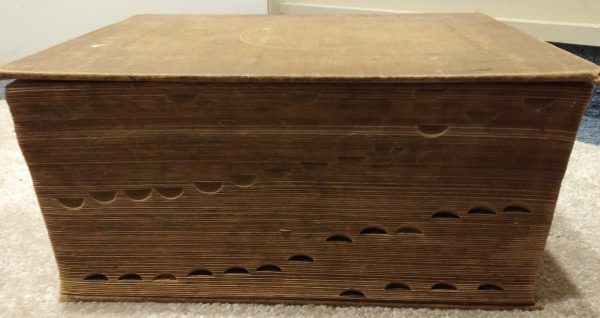 Dictionary is used in very good condition. Hardback cover does show wear but is completely intact all raised lettering is easily visible. Cover shows slight water damage and discoloration, no missing pages, however the first few actual dictionary pages have some wrinkling, (see photos for all described blemishes and any other flaws), all other dictionary pages are all intact in very good condition. Because of the age of the book the paper used shows some discoloration as is always normal for a book and paper used at the time of publishing but overall in very good condition. No dogeared pages or markings or writing on any pages. The very first page of the dictionary has a small address label who I believe to be the original owner or who the dictionary was first shipped to. Label is only a few inches wide as seen in the photo included.