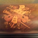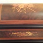 EXCELLENT CONDITION – Reuge Treasure Chest Music Box with all ten original metal discs. Violins, Music sheets & Floral on top.