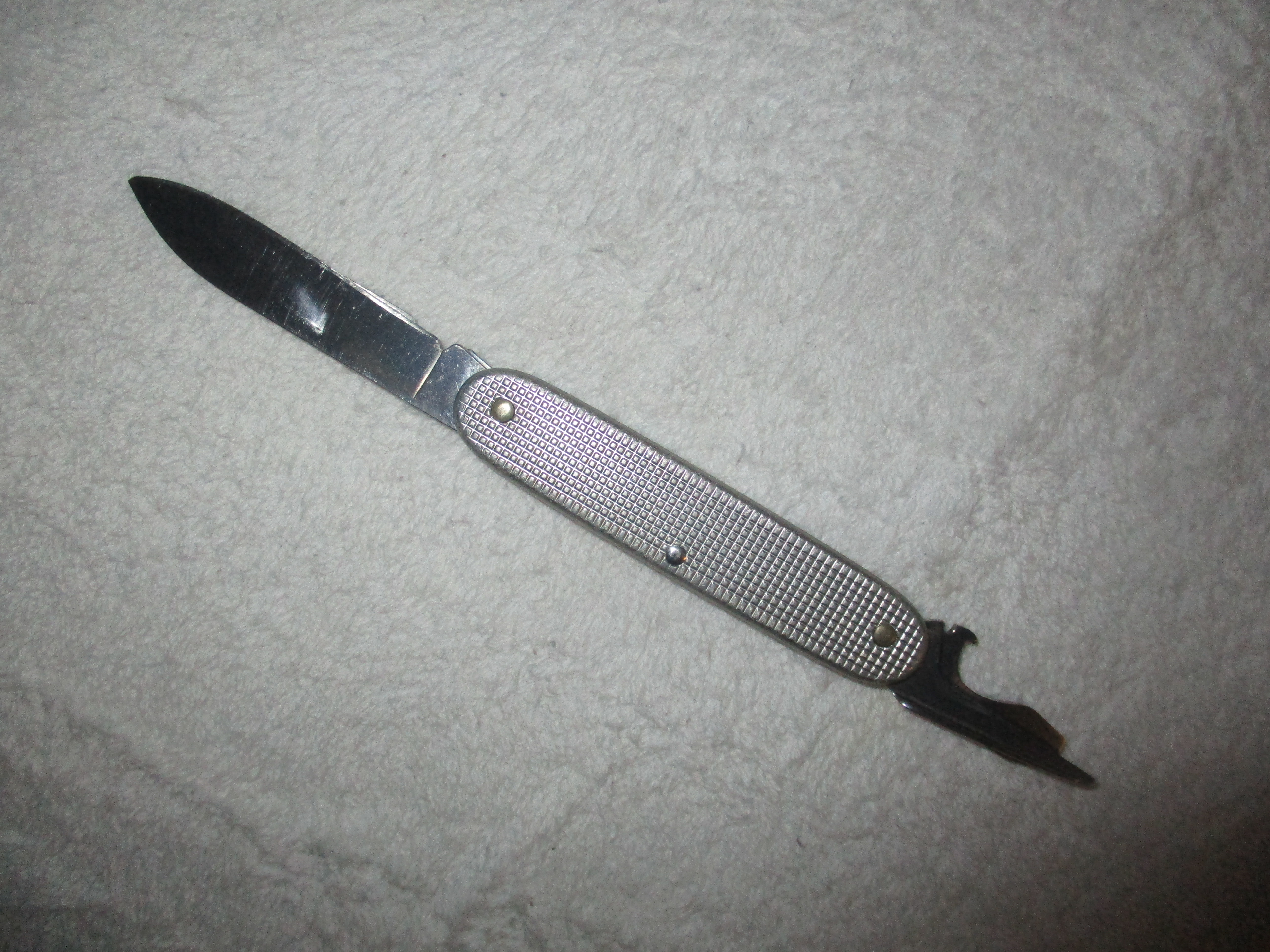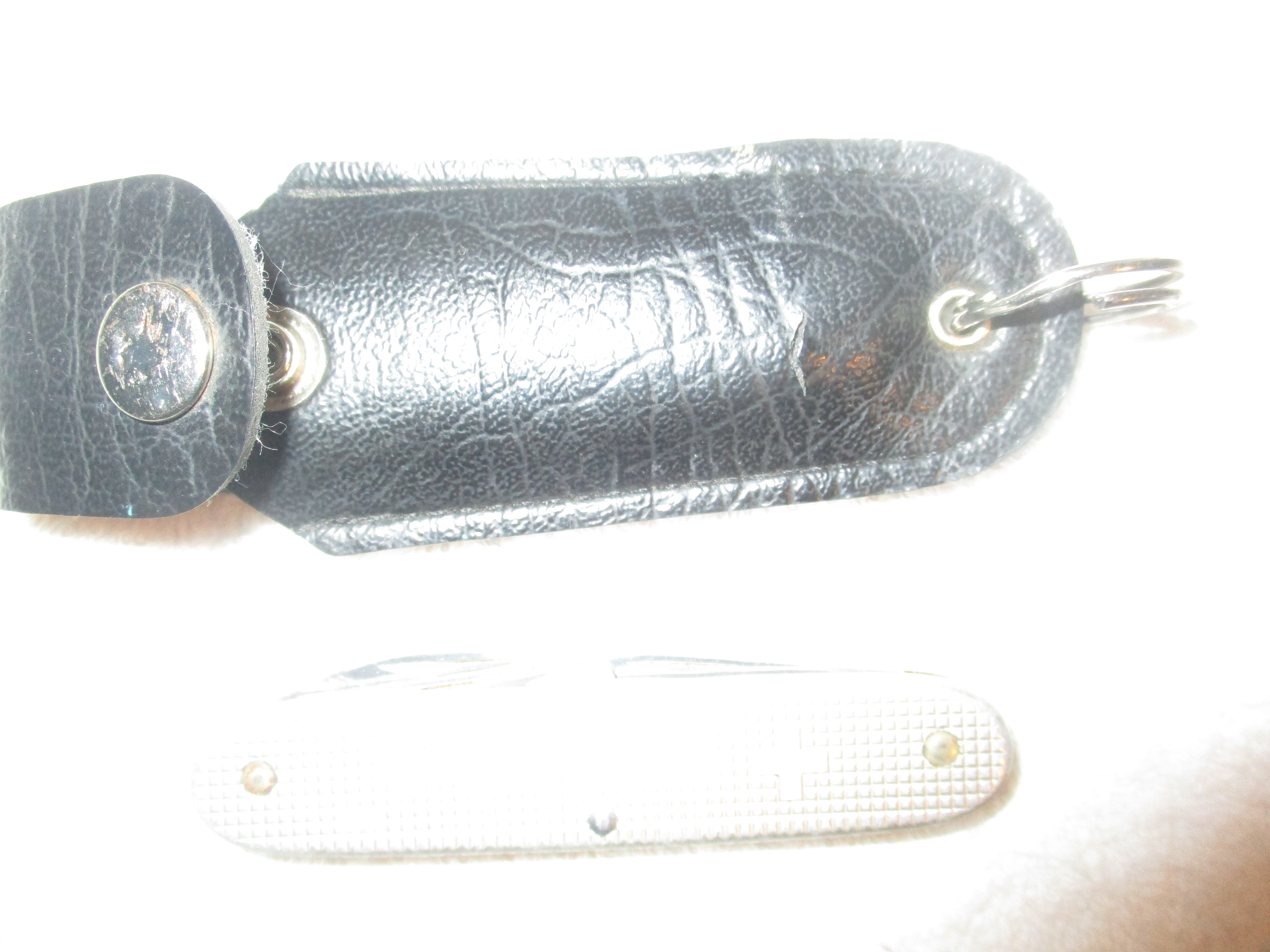 Victorinox Switzerland stainless Rosterei electricians four blade pocket knife with key chain / watch fob sheath.