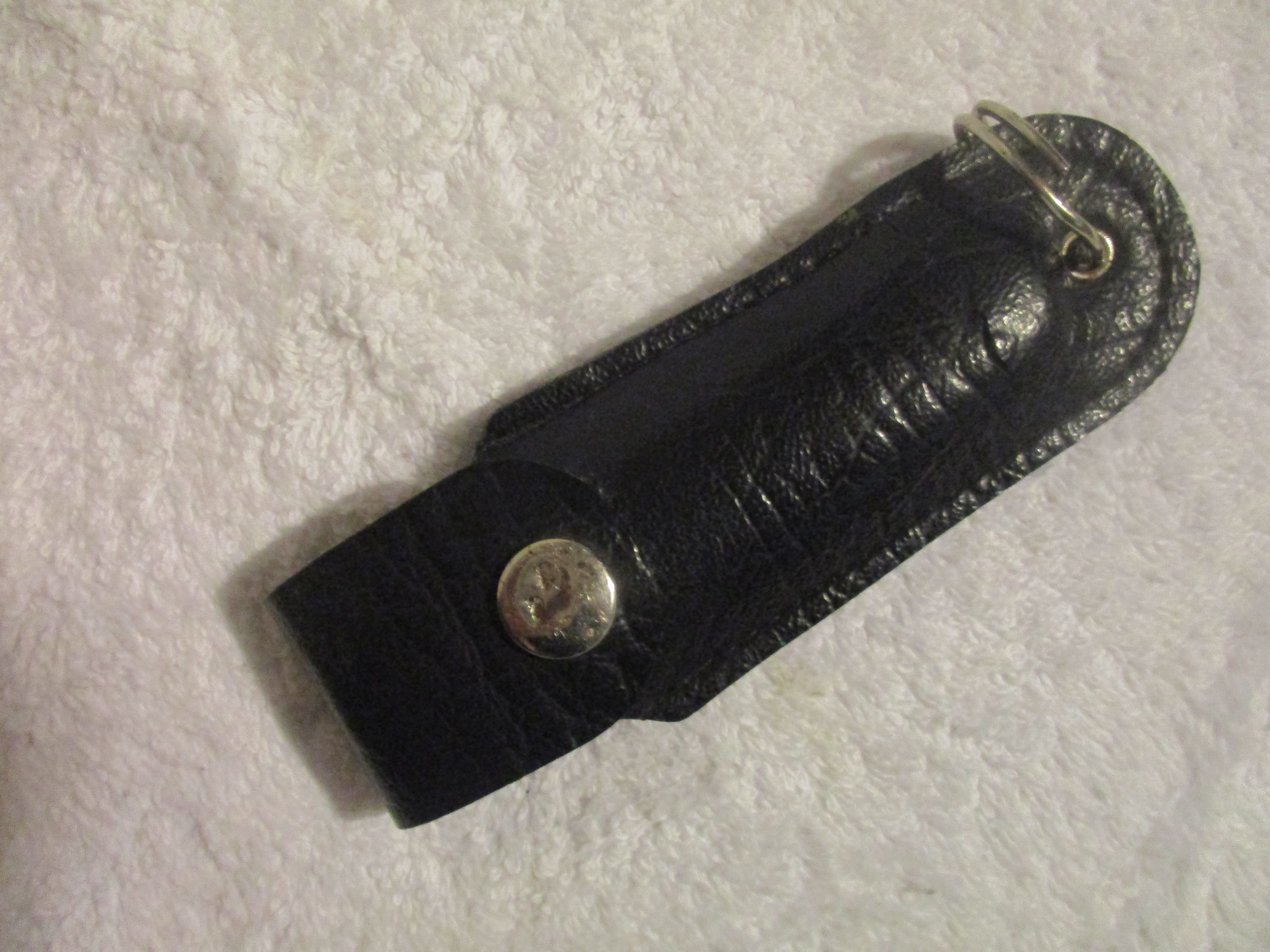 Like new condition with minor marks on blades. Sheath (faux leather) snap button has indentations on it and still functions fine. Start of separation of sheath on one side just needs a few stitches. Old symbol early model cross Trade Mark. Please see photos.